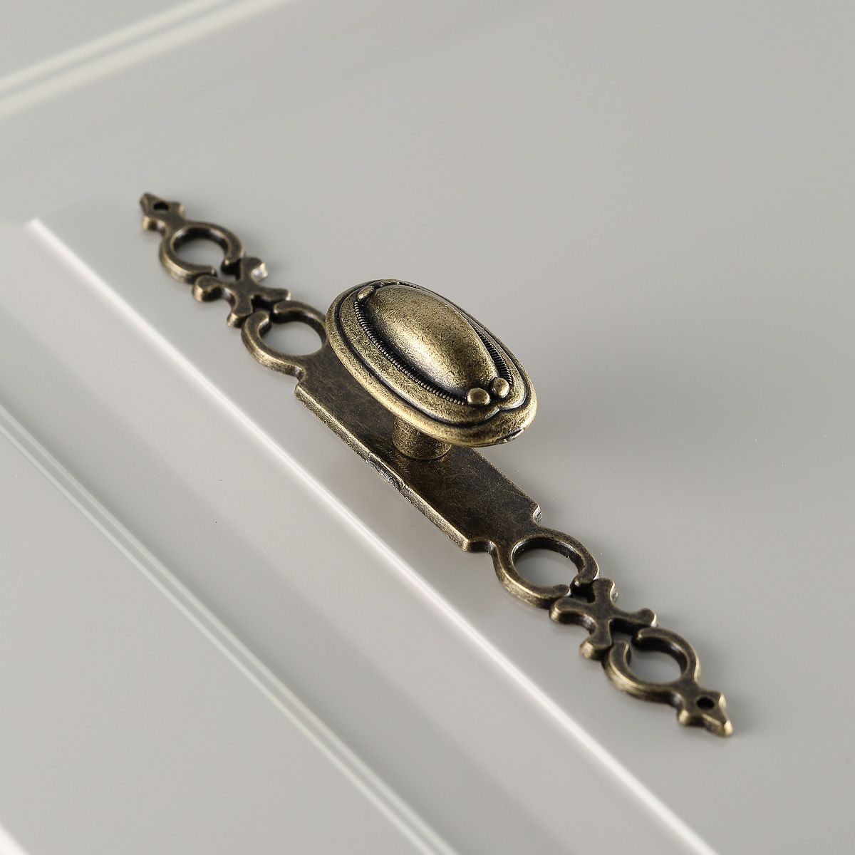 Antikk knot som måler 136mm lengde og passer inn til kommoder og nattbord som er i antikk still.